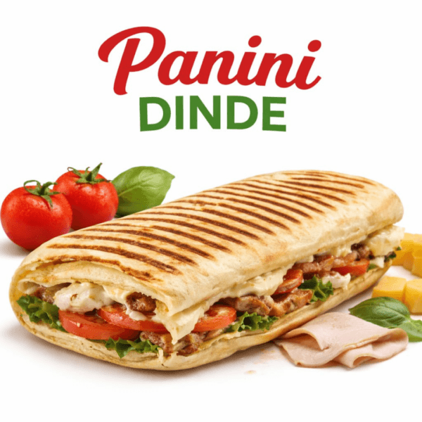 Découvrez notre Panini Dinde, un choix parfait pour ceux qui recherchent un repas rapide, léger et gourmand. Chaque panini est préparé à la minute avec de la dinde tendre et savoureuse, insérée dans un pain moelleux grillé à la perfection, pour une texture croustillante à l’extérieur et fondante à l’intérieur.