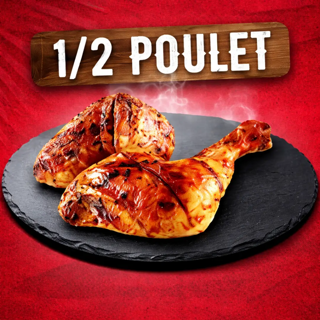 Découvrez le délicieux 1/2 poulet grillé proposé par CRUSTY Agadir, un plat généreux préparé pour les amateurs de poulet grillé et de saveurs authentiques.