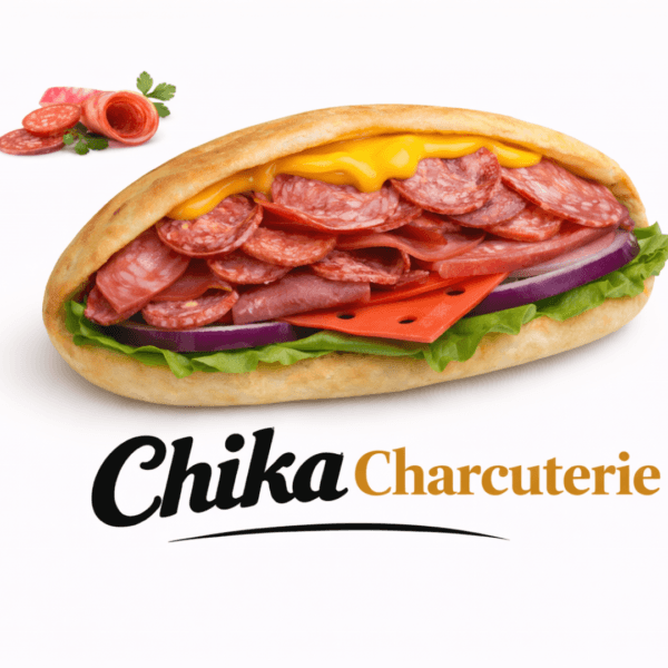 La chika charcuterie fromage rouge est un sandwich chaud et gourmand, préparé avec un assortiment de charcuterie savoureuse, du fromage rouge fondant et une sauce maison, le tout servi dans un pain chaud et crousti-moelleux.