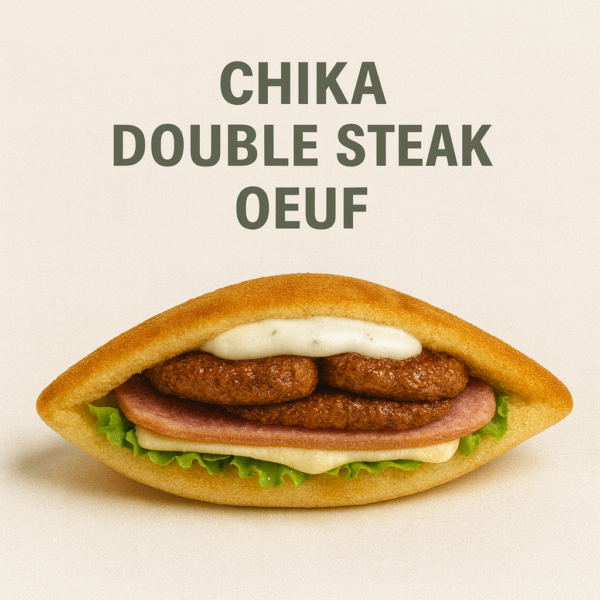 Découvrez notre Chika Double Steak Œuf, un sandwich généreux et ultra-gourmand, pensé pour les amateurs de viande et les grosses faims.