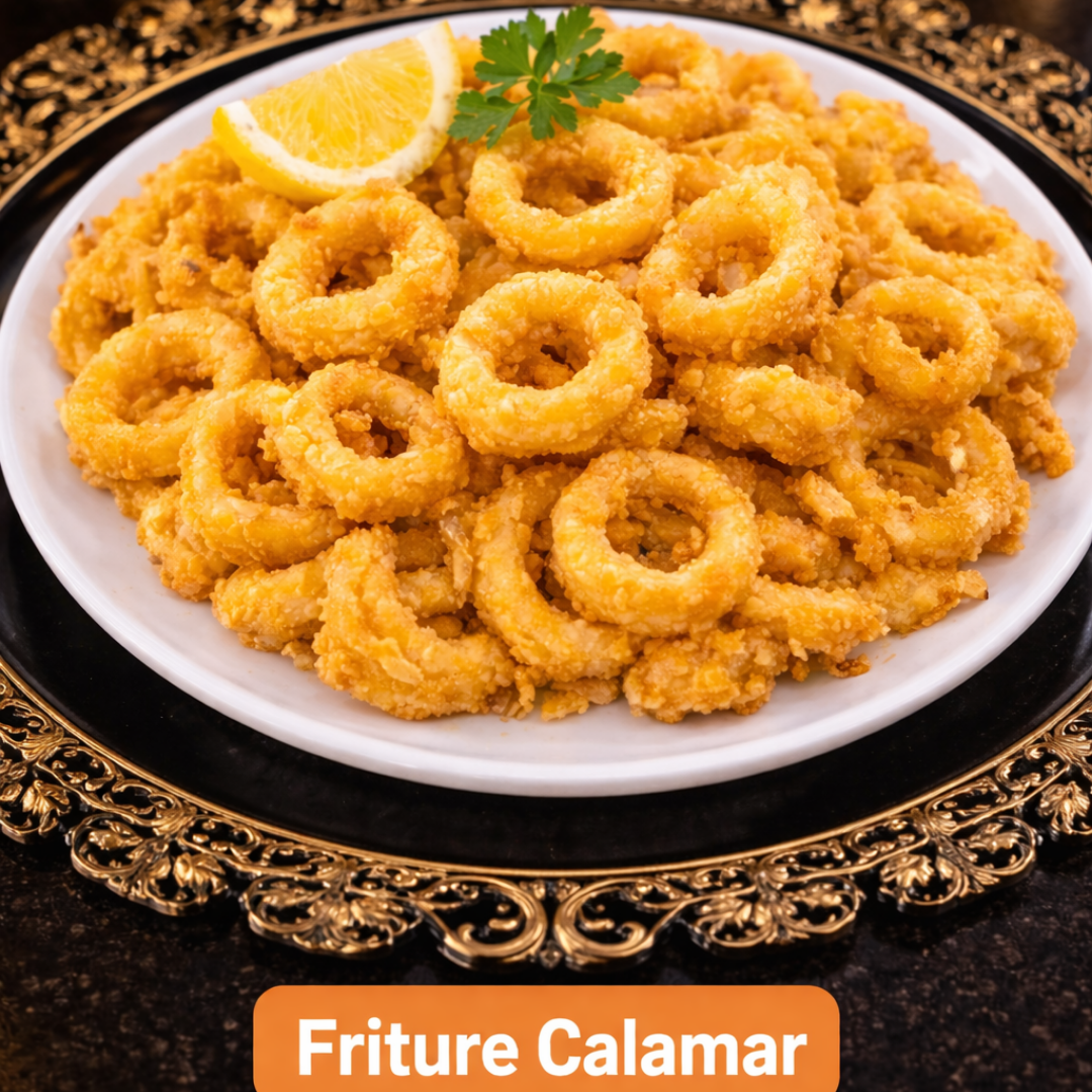 Notre friture de calamar est préparée avec des calamars frais, soigneusement nettoyés et découpés, puis enrobés d’une panure légère avant d’être frits à la perfection.