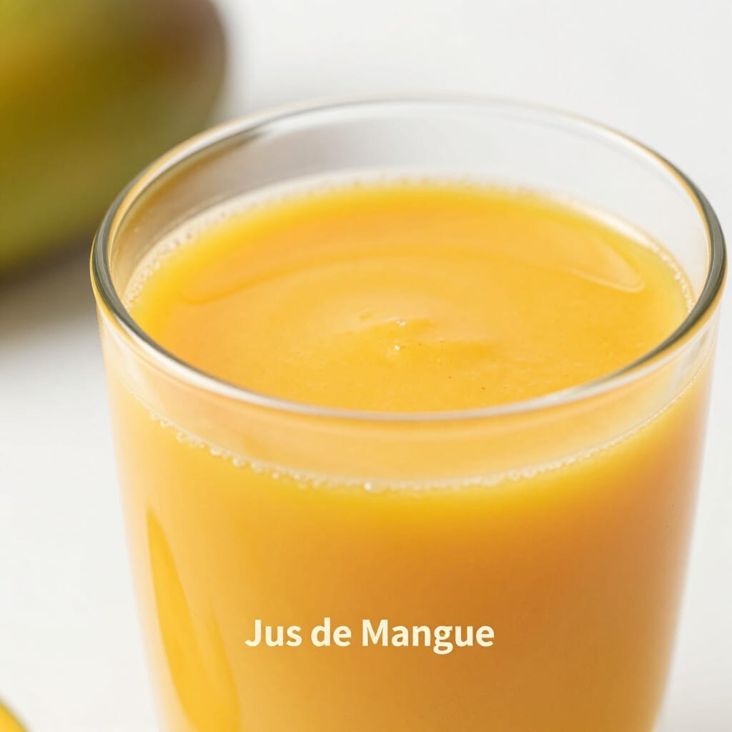 Savourez notre Jus de Mangue frais, préparé à la minute avec des mangues mûres et juteuses pour une boisson naturellement douce et parfumée. Rafraîchissant et exotique, il est parfait pour un petit-déjeuner vitaminé, une pause fruitée ou accompagner vos goûters.