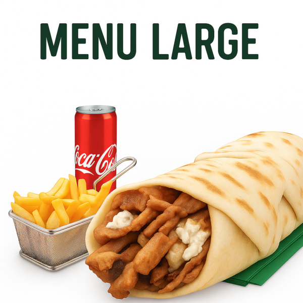 Découvrez notre Menu Large, un repas complet pensé pour ceux qui veulent une portion généreuse et savoureuse.