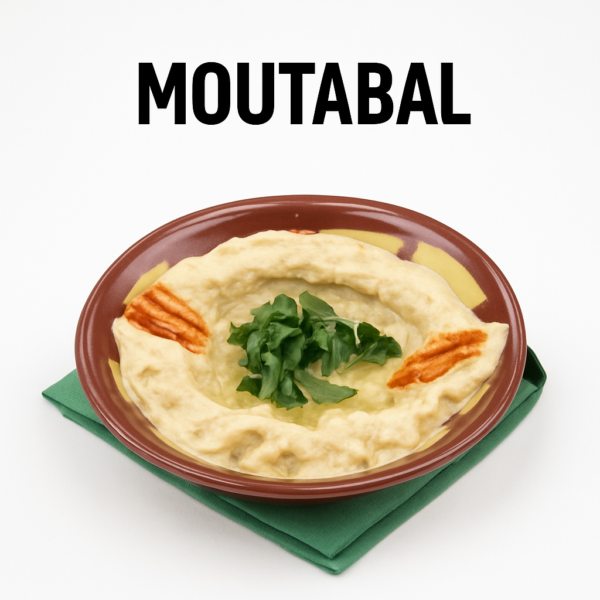 Découvrez le Moutabal, un mezzé libanais traditionnel préparé à partir d’aubergines grillées, mélangées à du tahini, du citron frais et une touche d’huile d’olive.