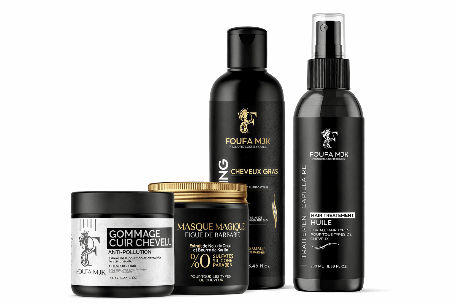 Le Pack Diamond FOUFA MJK est une routine capillaire complète haut de gamme, conçue pour purifier le cuir chevelu, nourrir intensément la fibre capillaire et stimuler la pousse des cheveux.