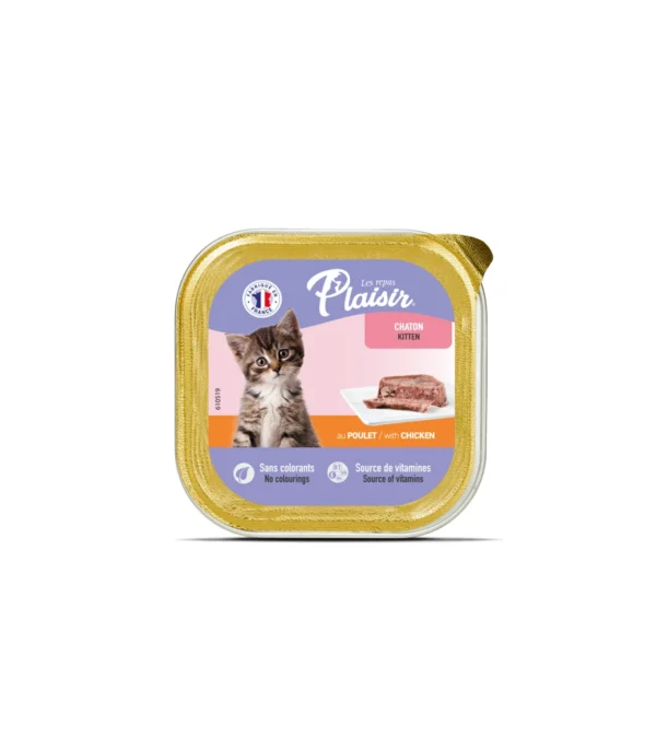 La pâtée Les Repas Plaisir Chaton au poulet 100 g est un aliment complet spécialement formulé pour répondre aux besoins nutritionnels des chatons en pleine croissance. Sa recette savoureuse au poulet offre une excellente appétence et une texture tendre, parfaitement adaptée aux jeunes chats.