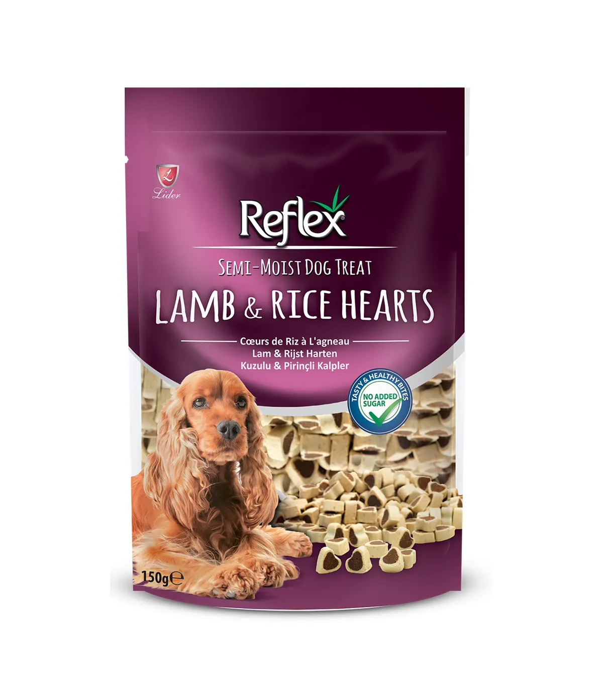 Reflex Semi-Moist Dog Treat Agneau & Riz 150g – Friandises Cœurs pour Chien