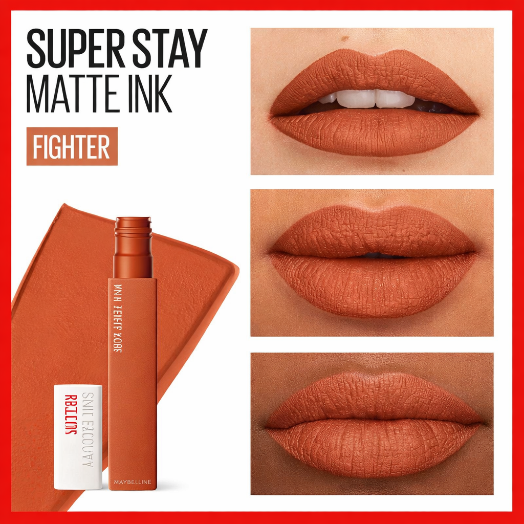 Le Super Stay Matte Ink de Maybelline est un rouge à lèvres liquide iconique offrant une couleur intense et un fini ultra-mat qui dure jusqu’à 16 heures.