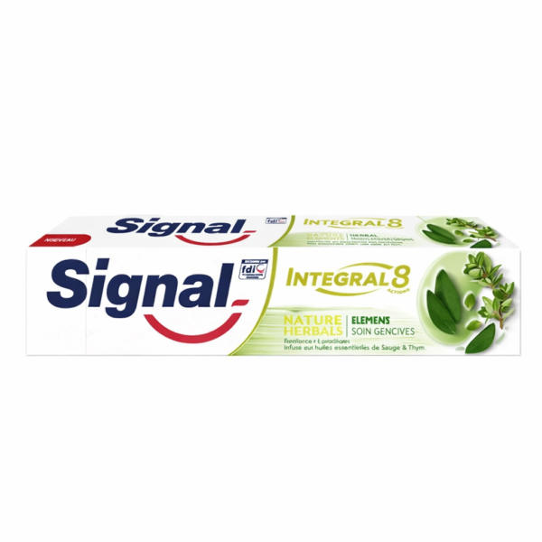 Le dentifrice Signal Integral 8 Nature Herbal Elements offre une protection bucco-dentaire complète grâce à sa formule enrichie en extraits naturels de plantes soigneusement sélectionnés. Il aide à renforcer les gencives, protéger les dents et maintenir une hygiène orale saine au quotidien.